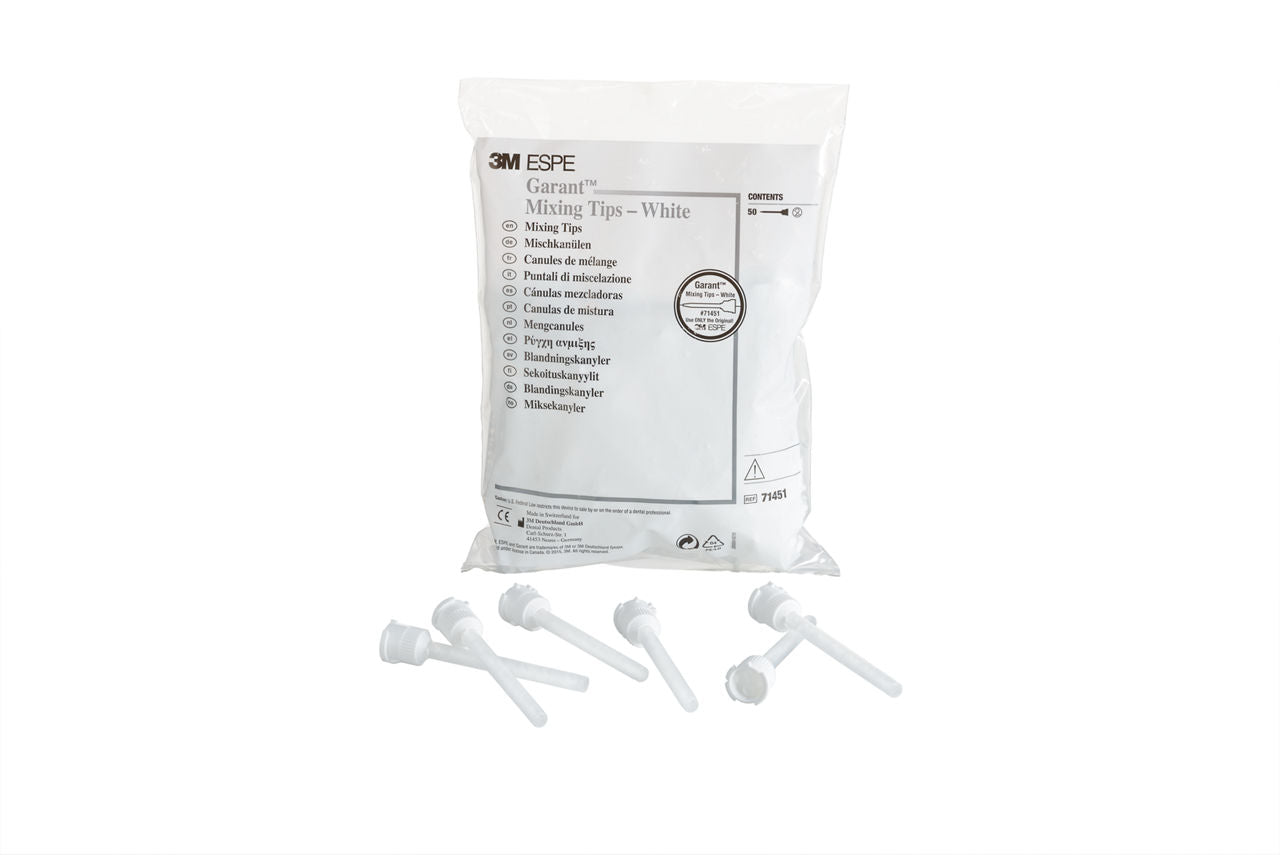 Die 3M™ Garant™ Mischkanülen sind unverzichtbare Einwegkomponenten, die für das automatische, konsistente Mischen und Dosieren von zwei-komponentigen Abformmaterialien mit dem **3M™ Garant™ Dispenser 1:1/2:1** entwickelt wurden. Diese blau-farbigen Kanülen sind optimiert, um eine perfekt homogene Mischung der Basis- und Katalysatorpasten zu gewährleisten. Dies ist entscheidend, um die physikalischen Eigenschaften – wie Reißfestigkeit und Dimensionsstabilität – des Abformmaterials zu maximieren. Durch die Eliminierung manueller Mischfehler sichern diese Kanülen zuverlässige und reproduzierbare Ergebnisse für alle Abformverfahren.